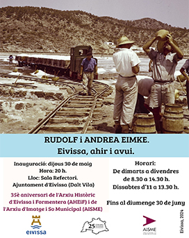 L'Ajuntament inaugurarà aquest dijous 30 de maig, a les 20 hores, la mostra 'Rudolf i Andrea Eimke. Eivissa, ahir i avui' per celebrar el 35è aniversari de l'Arxiu d'Eivissa i Formentera. L’exposició mostra les imatges de 1956 fetes per Koni Eimke i les realitzades el 2023 per la seua filla Andrea. A més, també es commemora la creació de l'Arxiu d'Imatge i So Municipal, AISME, el primer que es va crear a les Pitiüses i que va coincidir amb el 150è aniversari del naixement oficial de la fotografia (1839).