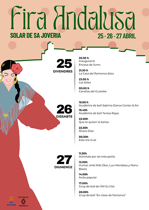 El Ayuntamiento de Eivissa ha organizado para este fin de semana la Feria Andaluza, la cual empezará el viernes, día 25, y acabará el domingo 27 de abril en el solar de Sa Joveria.
